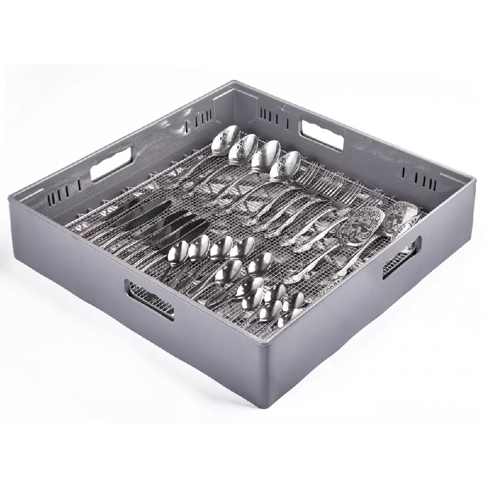 В комплекте идут корзины 500×500 мм для чашек и тарелок, вставка для приборов, шланг для подключения к водопроводу (G 3/4", длина 1,5 м), дозирующее устройство для ополаскивателя и насос для подачи воды при мойке.