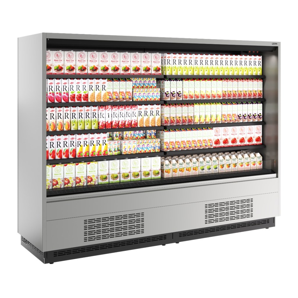 Горка холодильная Carboma FC20-07 VM 2,5-2 0300 (версия 2.0) (9006-9005) (бок металл) применяется на предприятиях общественного питания и торговли для охлаждения, кратковременного хранения и предпродажной демонстрации напитков, мяса, птицы, полуфабрикатов, молочных и гастрономических изделий.