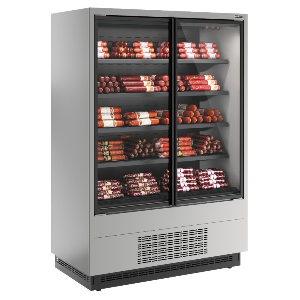 Горка холодильная Carboma FC20-07 VV 1,3-1 0030 STANDARD фронт X1 (версия 2.0) (9006-9005) (бок металл с зеркалом) применяется в предприятиях общественного питания и торговли для эффективного охлаждения, кратковременного хранения и предпродажной демонстрации напитков, мясных и птицеводческих продуктов, полуфабрикатов, молочной и гастрономической продукции.