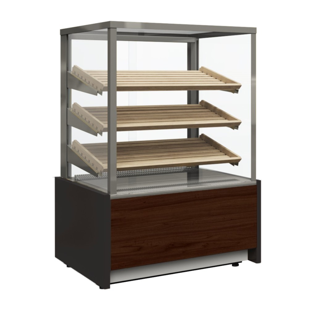 Витрина кондитерская Carboma KC70 N 0,9-1 Light Bread Паттерн (0105 Венге) хлебная, со стеклом предназначена для кратковременного хранения и привлекательной демонстрации хлебобулочных изделий. Наличие фронтального стекла обеспечивает защиту продукции от внешних воздействий, сохраняя её свежесть и гигиеничность, при этом демонстрационная зона остаётся полностью обозримой для покупателей.