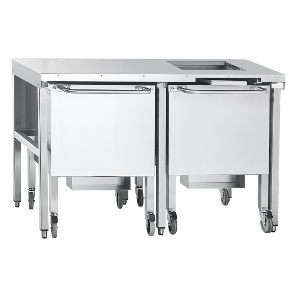 Комплектация: стол для установки льдогенератора, 2 подкатных бункера.