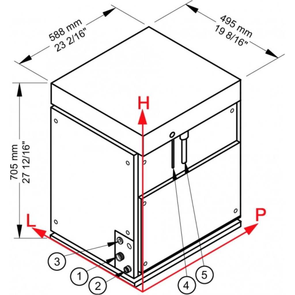 Корпус выполнен из нержавеющей стали AISI 304 с отделкой Scotch Brite, испаритель — из алюминиевого сплава Anticorodal, рама — из нержавеющей стали. Модель оснащена электромеханическим управлением, вертикальным фиксированным испарителем «без утечек» и фильтром от накипи.