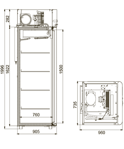Каталог оборудования Холодильное оборудованиеШкафы холодильныеШкафы морозильные низкотемпературные до -18 °СШкаф морозильный Polair CB107-Sm Alu Шкаф морозильный Polair CB107-Sm Alu Код товара: 062-592 Поделиться: WhatsAppTelegram СравнитьДобавить в КПВ избранное 0 149 175 ₽ В корзину 0 шт Под заказСамовывоз сегодня бесплатно Взять в кредит Купить в лизинг Получить консультацию в WhatsApp Описание Характеристики Отзывы 0 Инструкции 4 Шкаф морозильный Polair CB107-Sm Alu предназначен для демонстрации и надежного хранения продуктов на предприятиях общественного питания и торговли. Цельнозаливной корпус выполнен из стали с полимерным покрытием и дополнен алюминиевыми профилями, что обеспечивает высокую механическую прочность и долговечность конструкции. Алюминиевые элементы дверей и верхней панели подчеркивают современный и премиальный дизайн. Шкаф стабильно работает при температуре окружающей среды до +40 °С и относительной влажности воздуха до 80%, сохраняя продукты в оптимальных условиях. Основные особенности: Электронный блок управления с жидкокристаллическим дисплеем Верхнее расположение агрегата, обеспечивающее удобный доступ к внутреннему объему Клапан Шредера для обслуживания системы охлаждения Компенсационный клапан с ПЭНом обогрева для предотвращения перепадов давления ПЭН обогрева трубки слива конденсата и ПЭН обогрева дверного проема для защиты от наледи Распашной тип дверей с возможностью изменения стороны открывания Интегрированные ручки, встроенные в алюминиевые профили дверей Эластичные уплотнители с магнитными вставками, обеспечивающие максимальную герметизацию Встроенная внутренняя подсветка для удобного обзора содержимого Микропереключатель, отключающий вентилятор и включающий подсветку при открытии двери Регулируемые по высоте ножки и педаль для открывания двери, повышающие эргономику использования Замок для безопасного хранения продукции 4 полки формата GN 2/1 (530×650 мм) с допустимой нагрузкой до 40 кг Толщина теплоизоляции корпуса — 61 мм Изображение товара, представленного на фото, может отличаться от его фактического вида. Показать все Габаритные размеры735×945×1996 ммДиапазон рабочей температурыдо -18 °CДлина735 ммГлубина450 ммВысота1996 ммОбъём700 лМатериал корпусаНержавеющая сталь Тип управленияМеханическое Расход электроэнергии в сутки12 кВтКоличество полок2 штКоличество дверей1 штЗамокЕсть Тип двериМеталлическая Способ открыванияРаздвижные (купе) Напряжение220 ВХладагентR290 Расположение агрегатаНижнее Габариты в упаковке850×988×2160 ммВес нетто128 кгВес брутто152 кгБрендPolair Оставить отзыв Еще никто не оставил отзыв на этот товар Схема POLAIR CB107-Sm.jpgИнструкция на POLAIR CB107-Sm.pdfСертификат соответствия.pdfДекларация о соответствии.pdf Похожие товары Перейти в каталог В наличии 189 749 ₽ Шкаф морозильный Polair CB114-S Под заказ 112 617 ₽ Шкаф морозильный МХМ Капри 0,5Н нержавейка Под заказ 142 315 ₽ Шкаф морозильный Рапсодия R 750 LX Под заказ 117 056 ₽ Шкаф морозильный Ангара 500 БК В наличии 206 757 ₽ Шкаф морозильный Polair DB114-S Под заказ 206 757 ₽ Шкаф морозильный Polair В наличии 129 642 ₽ Шкаф морозильный Polair DB107-S В наличии 497 576 ₽ Шкаф морозильный со стеклом TEFCOLD UFSC1600GCP трехдверный С этим товаром покупают Под заказ 98 550 ₽ Витрина холодильная Carboma GС95 ВХС-1,0 (GС95 SM 1,0-1 INOX) Под заказ 76 100 ₽ Витрина холодильная универсальная Ангара 2 КУБ 1,3 статика В наличии 120 577 ₽ Шкаф холодильн