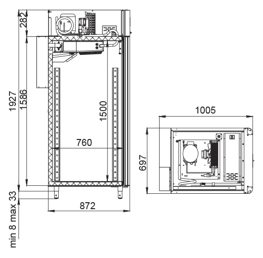 Каталог оборудования Холодильное оборудованиеШкафы холодильныеСпециализированные холодильные шкафыШкаф холодильный для вызревания сыра Polair CS107 Cheese полки нерж., со стеклом Шкаф холодильный для вызревания сыра Polair CS107 Cheese полки нерж., со стеклом Код товара: 062-630 Поделиться: WhatsAppTelegram СравнитьДобавить в КПВ избранное 0 397 800 ₽ В корзину 0 шт Под заказСамовывоз сегодня бесплатно Взять в кредит Купить в лизинг Получить консультацию в WhatsApp Описание Характеристики Отзывы 0 Инструкции 5 Шкаф холодильный для вызревания сыра Polair CS107 Cheese полки нерж., со стеклом предназначен для создания оптимальных условий хранения и дозревания твердых и полутвердых сыров на предприятиях общественного питания и торговли. Монолитный цельнозаливной корпус изготовлен из нержавеющей стали снаружи и изнутри (кроме задней стенки), что обеспечивает высокую прочность и долговечность шкафа. Дверь выполнена из стеклопакета. Оборудование рассчитано на работу при температуре окружающей среды до 40 °С. Особенности: Верхнее расположение агрегата Многофункциональная русифицированная контрольная панель с 5-дюймовым дисплеем Возможность создания и сохранения собственных программ в памяти электронного блока Четыре перфорированные полки из нержавеющей стали Встроенный ультразвуковой увлажнитель (требуется подключение к системе очищенной воды и централизованной канализации) Распашная дверь с заливной теплоизоляцией Заменяемый уплотнитель двери с магнитной вставкой Встроенная ручка для удобства открытия Отключаемая внутренняя LED-подсветка Штампованное углубление в дне корпуса для удобства очистки Педаль для бесконтактного открывания двери Регулировка уровня влажности от 60% до 95% Максимальная нагрузка на полку — 40 кг Толщина стенки корпуса — 43 мм Polair CS107 Cheese полки нерж., со стеклом — надежный и функциональный холодильный шкаф, обеспечивающий оптимальные условия для хранения и дозревания твердых и полутвердых сыров. Благодаря прочному корпусу, точному контролю температуры и влажности, а также современным технологиям увлажнения и управления, оборудование способствует сохранению качества и вкусовых характеристик продукции, повышая эффективность работы предприятий питания и торговли.Изображение товара, представленного на фото, может отличаться от его фактического вида. Показать все Габаритные размеры697×1005×1960 ммДиапазон рабочей температурыот -2 до +30 °CДлина697 ммШирина1005 ммВысота1960 ммОбъём700 лКол-во дверей1 Тип двериСтеклянная Количество полок4 штДопустимая нагрузка на полку40 кгУровень влажностиот 60 до 95 %Холодильный агрегатВстроенный Тип оттайкиАвтоматическая Тип охлажденияДинамическое ПодсветкаЕсть ХладагентR290 Вес нетто160 кгВес брутто190 кгБрендPolairВсе специализированные холодильные шкафы Из нержавейкиВсе специализированные холодильные шкафы Стеклянная дверь Оставить отзыв Еще никто не оставил отзыв на этот товар Схема POLAIR CS107 Cheese.jpgИнструкция на POLAIR CS107 Cheese.pdfБрошюра на POLAIR CS107 Cheese.pdfДекларация о соответствии.pdfСертификат соответствия.pdf Похожие товары Перейти в каталог Под заказ 282 471 ₽ Шкаф холодильный для вызревания мяса и сыра Carboma M700GN-1-G-MHC 0430 Под заказ 373 915 ₽ Шкаф холодильный для вызревания салями Polair CS107 Salami черный, со стеклом Под заказ 397 800 ₽ Шкаф холодильный для вызревания сыра Polair CS107 Cheese полки нерж., со стеклом Под заказ 207 942 ₽ Шкаф хо