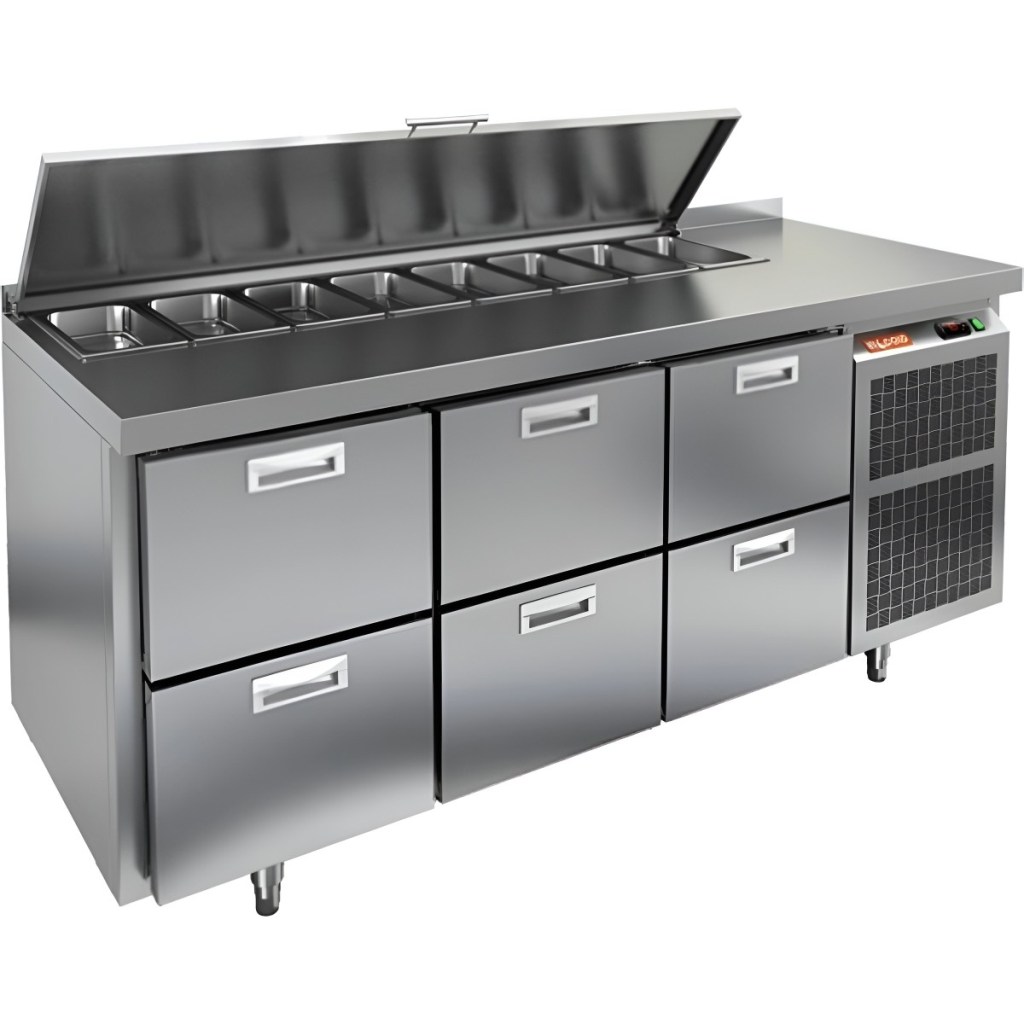 Каталог оборудования Холодильное оборудованиеСтолы охлаждаемыеСтолы холодильные для салатовСтол холодильный для салатов HiCold SL1-222GN (1/3) с крышкой Стол холодильный для салатов HiCold SL1-222GN (1/3) с крышкой Код товара: 064-844 Поделиться: WhatsAppTelegram СравнитьДобавить в КПВ избранное 0 260 092 ₽ В корзину 0 шт Под заказСамовывоз сегодня бесплатно Взять в кредит Купить в лизинг Получить консультацию в WhatsApp Описание Характеристики Отзывы 0 Инструкции 1 Стол холодильный для салатов HiCold SL1-222GN (1/3) предназначен для использования на предприятиях общественного питания и торговли. Он объединяет рабочую поверхность и охлаждаемый отсек, что делает его удобным решением для хранения, охлаждения и подготовки ингредиентов при приготовлении салатов, пиццы и других блюд. Такая конструкция позволяет повару работать быстрее и эффективнее, так как все необходимые продукты находятся под рукой. Корпус и столешница выполнены из прочной нержавеющей стали, устойчивой к коррозии и легко поддающейся санитарной обработке.Металлическая крышка защищает продукты от загрязнений и сохраняет их свежесть. Особенности модели: Электронная панель управления — точная настройка температурного режима. 6 выдвижных ящика — быстрое размещение и замена продуктов. Вместимость салат-бара — до 8 гастроемкостей глубиной до 100 мм. Автоматические доводчики — комфорт при загрузке/выгрузке. Легкозаменяемые магнитные уплотнители — надежная герметичность. Открытая агрегатная часть — быстрый доступ для обслуживания. Регулируемые по высоте ножки — устойчивость даже на неровном полу. Толщина столешницы, борта и теплоизоляции — 50 мм, что обеспечивает прочность и энергоэффективность конструкции. HiCold SL1-222GN (1/3) — практичное и удобное решение для профессиональной кухни, обеспечивающее удобную подготовку и хранение ингредиентов.Изображение товара, представленного на фото, может отличаться от его фактического вида. Показать все Габаритные размеры1835×700×850 ммДиапазон рабочей температурыот +2 до +10 °CРасположение агрегатаБоковое Материал столешницыНержавеющая Тип столаС ящиками Объём505 лТип гастроемкостейGN 1/3 Количество ящиков6 штРазмер полки530×325 ммНапряжение220 ВМощность0,46 кВтТип охлажденияДинамическое Тип оттайкиАвтоматическая СтолешницаС бортом Габариты в упаковке2000×850×1000 ммВес нетто120 кгВес брутто140 кгБрендHicold Оставить отзыв Еще никто не оставил отзыв на этот товар Декларация о соответствии.pdf Ранее просмотрено В наличии 140 122 ₽ Стол холодильный для салатов HiCold SL1-11GN (1/3) без крышки Под заказ 166 222 ₽ Стол холодильный для салатов HiCold SL1-11GN (1/3) О М с крышкой Под заказ 67 745 ₽ Витрина для ингредиентов Polair VT2vEN (1/3) с подсветкой и защитным колпаком Под заказ 268 381 ₽ Компрессорно-конденсаторный блок Север ACM-ZB21 Под заказ 180 090 ₽ Горка холодильная Carboma FC20-07 VM 1,0-2 (версия 2.0) (9006-9005) Под заказ 158 400 ₽ Горка холодильная Carboma FC14-06 VM 0,7-2 цвет по схеме (стандарт)