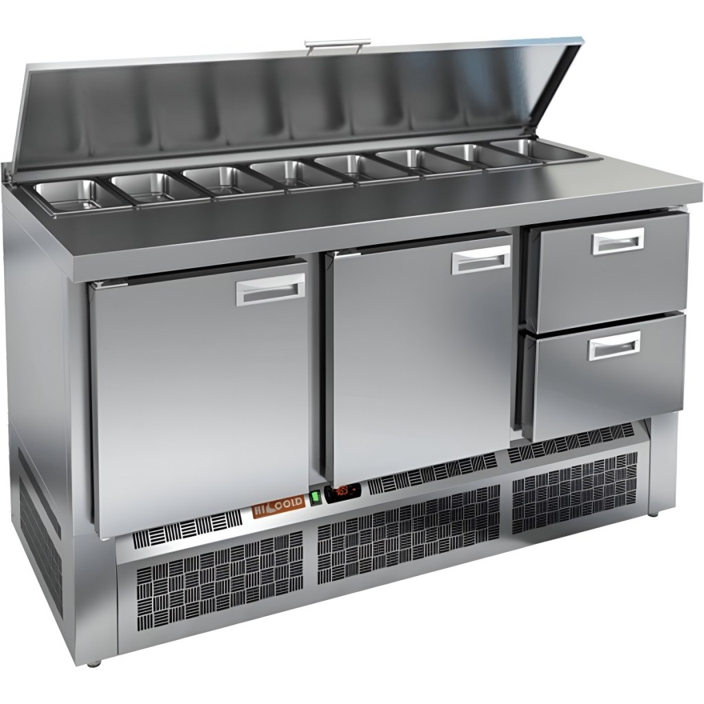 Каталог оборудования Холодильное оборудованиеСтолы охлаждаемыеСтолы холодильные для салатовСтол холодильный для салатов HiCold SLE1-112GN (1/3) О с крышкой Стол холодильный для салатов HiCold SLE1-112GN (1/3) О с крышкой Код товара: 064-903 Поделиться: WhatsAppTelegram СравнитьДобавить в КПВ избранное 0 178 192 ₽ В корзину 0 шт Под заказСамовывоз сегодня бесплатно Взять в кредит Купить в лизинг Получить консультацию в WhatsApp Описание Характеристики Отзывы 0 Инструкции 2 Стол холодильный для салатов HiCold SLE1-112GN (1/3) О с крышкой предназначен для профессионального использования в заведениях общественного питания и торговли. Он обеспечивает не только охлаждение и кратковременное хранение продуктов, но и удобную рабочую поверхность для подготовки ингредиентов, что особенно актуально при приготовлении салатов, пиццы и холодных блюд. Корпус и столешница изготовлены из высококачественной нержавеющей стали, что гарантирует долговечность, легкость в уходе и соответствие санитарным требованиям. Металлическая крышка защищает продукты от загрязнений и сохраняет их свежесть. Основные особенности: Электронная панель управления — для точной настройки температуры и простоты эксплуатации. 2 вместительные полки GN 1/1 — обеспечивают организованное хранение продуктов. 2 глухие дверцы с автоматическими доводчиками и фиксацией — повышают удобство использования, особенно при загрузке и выгрузке продуктов. Салат-бар на 8 гастроемкостей — удобно размещает большое количество ингредиентов под рукой. Автоматические доводчики дверей — с фиксацией в открытом положении для комфортной загрузки. Магнитные уплотнители — легко заменяются и обеспечивают надежное уплотнение. Открытая агрегатная часть — облегчает доступ для обслуживания и ремонта. Регулируемые по высоте ножки — позволяют точно выставить уровень на неровной поверхности. Максимальная глубина гастроемкостей — 100 мм — подходит для хранения различных типов продуктов. Столешница толщиной 50 мм без борта — полноценная рабочая зона. Теплоизоляция толщиной 50 мм — сохраняет стабильный температурный режим и снижает энергозатраты. HiCold SLE1-112GN (1/3) О с крышкой — это практичное решение для профессиональных кухонь, где важно сочетание удобства, вместительности и надежности. Модель позволяет организовать рабочее пространство эффективно и с комфортом для персонала.Изображение товара, представленного на фото, может отличаться от его фактического вида. Показать все Габаритные размеры1485×700×850 ммДиапазон рабочей температурыот +2 до +10 °CРасположение агрегатаНижнее Материал столешницыНержавеющая Тип столаС дверьми и ящиками Тип двериГлухая Объём320 лКоличество дверей2 штТип гастроемкостейGN 1/3 Количество ящиков2 штРазмер полки530х325 ммНапряжение220 ВМощность0,22 кВтТип охлажденияДинамическое Тип оттайкиАвтоматическая СтолешницаБез борта Вес нетто94 кгВес брутто152 кгБрендHicold Оставить отзыв Еще никто не оставил отзыв на этот товар Паспорт на HICOLD SLE1-112GN.pdfДекларация о соответствии.pdf Ранее просмотрено Под заказ 294 562 ₽ Стол холодильный для салатов HiCold SLE1-2222GN (1/3) с крышкой Под заказ 15 111 ₽ Ванна моечная с бортом МХМ МБ-1-0,45-0,8/0,8 (AISI 430, t=0,6) Под заказ 207 532 ₽ Стол холодильный для салатов HiCold SLE3-1111GN высокое стекло Под заказ Цена по запросу Стол холодильный для салатов HiCold SL1-122GN (1/3) с крышкой Под заказ 320 122 ₽ Стол холодильный для салатов HiCold SL