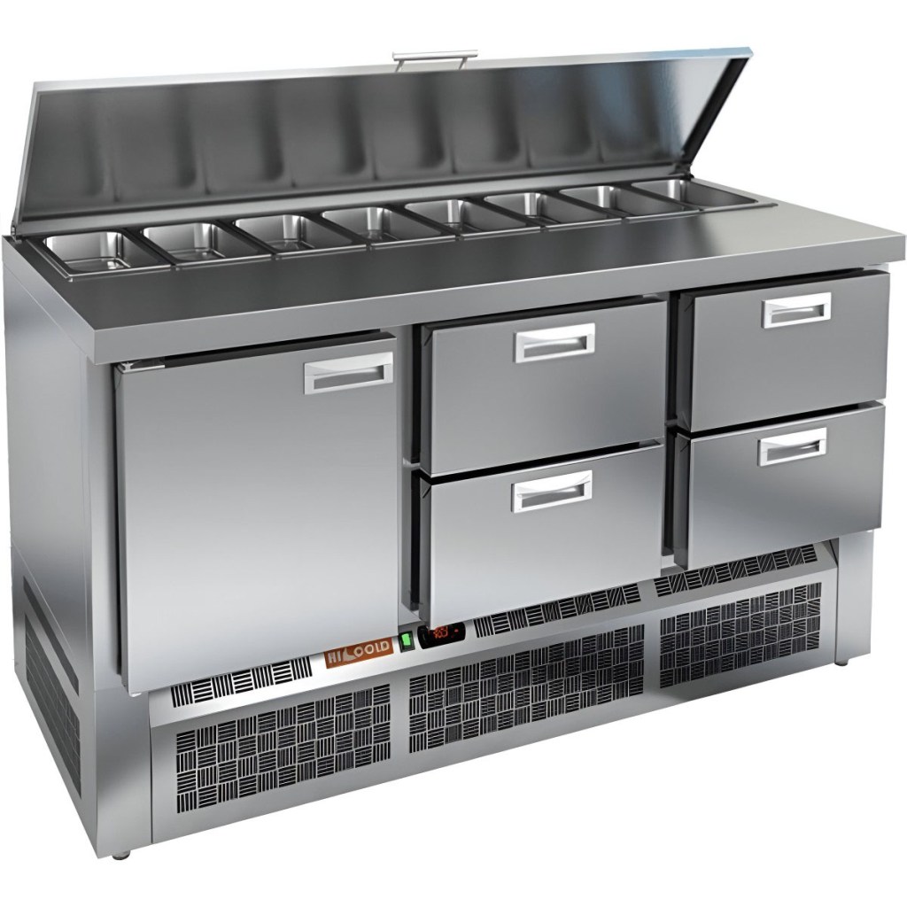Каталог оборудования Холодильное оборудованиеСтолы охлаждаемыеСтолы холодильные для салатовСтол холодильный для салатов HiCold SLE1-122GN (1/3) О с крышкой Стол холодильный для салатов HiCold SLE1-122GN (1/3) О с крышкой Код товара: 064-915 Поделиться: WhatsAppTelegram СравнитьДобавить в КПВ избранное 0 208 792 ₽ В корзину 0 шт Под заказСамовывоз сегодня бесплатно Взять в кредит Купить в лизинг Получить консультацию в WhatsApp Описание Характеристики Отзывы 0 Инструкции 2 Стол холодильный для салатов HiCold SLE1-222GN (1/3) О с крышкой предназначен для использования на предприятиях общественного питания и торговли. Он служит для хранения и обработки ингредиентов, используемых при приготовлении салатов, пиццы, закусок и других блюд. Также стол подходит для охлаждения и кратковременного хранения скоропортящихся продуктов и напитков. Модель сочетает в себе прочную рабочую поверхность и охлаждаемый внутренний объем, что упрощает процесс приготовления: все необходимые ингредиенты всегда под рукой. Корпус и столешница изготовлены из нержавеющей стали, устойчивой к воздействию влаги, механическим повреждениям и легко поддающейся очистке. Металлическая крышка защищает продукты от загрязнений и сохраняет их свежесть. Особенности: Электронная панель управления — обеспечивает точное и удобное регулирование температуры внутри камеры. 1 глухая дверь с автоматическими доводчиками и фиксацией — повышает удобство использования, особенно при загрузке и выгрузке продуктов. 4 выдвижных ящиков — позволяют удобно распределить ингредиенты и оптимально организовать пространство для хранения продуктов. Салат-бар вмещает 8 гастроемкостей — обеспечивает быстрый доступ к разнообразным ингредиентам. Автоматические доводчики дверей с фиксатором — улучшают эргономику и предотвращают случайное захлопывание. Магнитные уплотнители — легко заменяются и обеспечивают хорошую теплоизоляцию. Открытая агрегатная часть — облегчает доступ к элементам системы охлаждения для технического обслуживания. Регулируемые ножки — позволяют установить стол на неровной поверхности. Максимальная глубина гастроемкостей — 100 мм — подходит для хранения различных типов продуктов. Столешница толщиной 50 мм без борта — полноценная рабочая зона. Теплоизоляция толщиной 50 мм — сохраняет стабильный температурный режим и снижает энергозатраты. HiCold SLE1-222GN (1/3) О с крышкой — это практичное и многофункциональное решение для профессиональной кухни. Благодаря вместительности, продуманной конструкции и надежной термоизоляции, стол позволяет организовать эффективное рабочее пространство и обеспечивает сохранность свежести продуктов в течение всего рабочего дня. Изображение товара, представленного на фото, может отличаться от его фактического вида. Показать все Габаритные размеры1485×700×850 ммДиапазон рабочей температурыот +2 до +10 °CРасположение агрегатаНижнее Материал столешницыНержавеющая Тип столаС дверьми и ящиками Тип двериГлухая Объём375 лКоличество дверей1 штТип гастроемкостейGN 1/3 Количество ящиков4 штНапряжение220 ВМощность0,2 кВтТип охлажденияДинамическое Тип оттайкиАвтоматическая СтолешницаБез борта Габариты в упаковке1700×850×1080 ммВес нетто115 кгВес брутто160 кгБрендHicold Оставить отзыв Еще никто не оставил отзыв на этот товар Паспорт на HICOLD SLE1-222GN О.pdfДекларация о соответствии.pdf Ранее просмотр