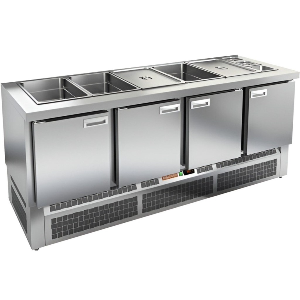 Каталог оборудования Холодильное оборудованиеСтолы охлаждаемыеСтолы холодильные для салатовСтол холодильный для салатов HiCold SLE3-1111GN О без крышки Стол холодильный для салатов HiCold SLE3-1111GN О без крышки Код товара: 064-927 Поделиться: WhatsAppTelegram СравнитьДобавить в КПВ избранное 0 174 502 ₽ В корзину 0 шт Под заказСамовывоз сегодня бесплатно Взять в кредит Купить в лизинг Получить консультацию в WhatsApp Описание Характеристики Отзывы 0 Инструкции 2 Стол холодильный для салатов HiCold SLE3-1111GN О без крышки предназначен для использования на предприятиях общественного питания и торговли. Он сочетает в себе функции охлаждения и хранения ингредиентов, используемых при приготовлении салатов, закусок, сэндвичей и других блюд, требующих кратковременного поддержания температуры. Модель обеспечивает удобный доступ к продуктам и позволяет повару работать максимально эффективно. Корпус и столешница изготовлены из нержавеющей стали, что гарантирует долговечность конструкции, устойчивость к коррозии и соответствие санитарным нормам. Особенности модели: Электронная панель управления позволяет точно настраивать температурный режим Четыре вместительные внутренние полки формата GN 1/1 обеспечивают удобную организацию пространства Вместимость салат-бара — 5 гастроемкостей формата GN 1/1 и 3 гастроемкости формата GN 1/6 Поддерживается использование гастроемкостей глубиной до 100 мм Двери оснащены автоматическими доводчиками с фиксацией в открытом положении Легкозаменяемые магнитные уплотнители обеспечивают герметичность и простоту обслуживания Открытая агрегатная часть упрощает доступ для сервисного обслуживания Регулируемые по высоте ножки позволяют адаптировать стол под любую рабочую поверхность Столешница толщиной 50 мм без борта — полноценная рабочая зона. Теплоизоляция толщиной 50 мм — сохраняет стабильный температурный режим и снижает энергозатраты. HiCold SLE3-1111GN О без крышки — это надёжный и практичный салатный стол, который сочетает в себе охлаждаемый отсек и удобную рабочую зону. Модель идеально подходит для интенсивной эксплуатации в профессиональных кухнях, обеспечивая быстрое обслуживание и надёжное хранение ингредиентов.Изображение товара, представленного на фото, может отличаться от его фактического вида. Показать все Габаритные размеры1970×700×1055 ммДиапазон рабочей температурыот +2 до +10 °CРасположение агрегатаНижнее Материал столешницыНержавеющая Тип столаС дверьми Тип двериГлухая Объём570 лКоличество дверей4 штТип гастроемкостейGN 1/1, GN 1/6 Размер полки530×325 (GN 1/1) ммНапряжение220 ВМощность0,46 кВтТип охлажденияДинамическое Тип оттайкиАвтоматическая СтолешницаБез крышки Вес нетто133 кгВес брутто189 кгБрендHicold Оставить отзыв Еще никто не оставил отзыв на этот товар Паспорт на HICOLD SLE3-1111GN О.pdfДекларация о соответствии.pdf Ранее просмотрено Под заказ 191 962 ₽ Стол холодильный для салатов HiCold SL1-1111SN без крышки Под заказ 119 200 ₽ Витрина кондитерская Carboma KC70 N 1,3-2 Light Паттерн (0105 Венге) хлебная, без стекла Под заказ 107 200 ₽ Витрина кондитерская Carboma KC70 N 0,9-1 Light Паттерн (0108 Темный дуб) нейтральная Под заказ 197 992 ₽ Стол холодильный для салатов HiCold SL1-1111GN (1/3) О с крышкой Под заказ 687 940 ₽ Котел пищеварочный Аbat КПЭМ-350-О со сливным краном Под заказ 215 000 ₽ Витрина кондитерская Carboma D4 VM 800-1 (R800C Carboma) (индивидуальное исполнение) 2 дверцы, стеклянные полки