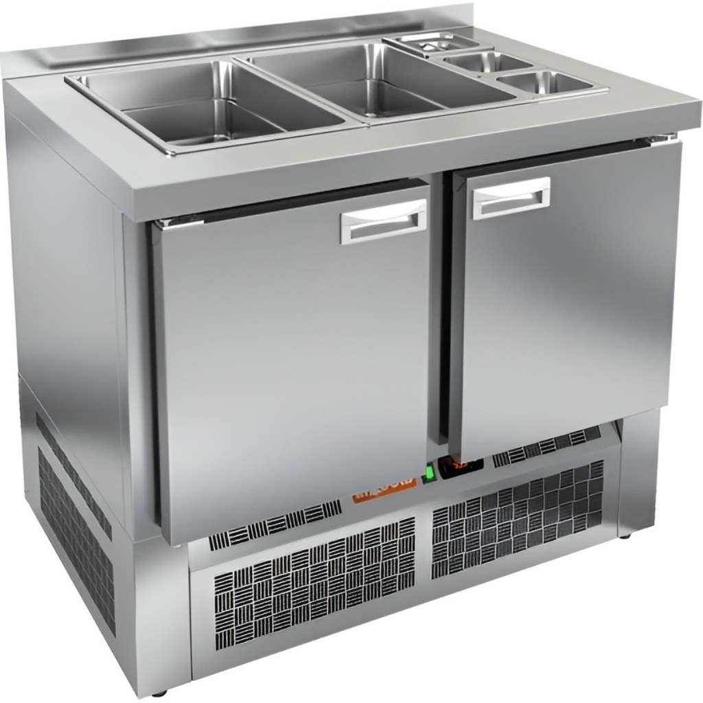 Каталог оборудования Холодильное оборудованиеСтолы охлаждаемыеСтолы холодильные для салатовСтол холодильный для салатов HiCold SLE3-11GN без крышки Стол холодильный для салатов HiCold SLE3-11GN без крышки Код товара: 064-935 Поделиться: WhatsAppTelegram СравнитьДобавить в КПВ избранное 0 118 162 ₽ В корзину 0 шт Под заказСамовывоз сегодня бесплатно Взять в кредит Купить в лизинг Получить консультацию в WhatsApp Описание Характеристики Отзывы 0 Инструкции 2 Стол холодильный для салатов HiCold SLE3-11GN без крышки предназначен для охлаждения и кратковременного хранения продуктов, используемых при приготовлении салатов, закусок, сэндвичей и других блюд. Он идеально подходит для предприятий общественного питания и торговли, где требуется удобный доступ к охлаждённым ингредиентам. Модель сочетает в себе рабочую поверхность и охлаждаемый объём, что обеспечивает эффективную организацию кухонного пространства. Корпус и столешница изготовлены из нержавеющей стали, что гарантирует долговечность конструкции, устойчивость к коррозии и соответствие санитарным нормам. Особенности модели: Электронная панель управления — обеспечивает точный контроль температуры Две полки формата GN 1/1 — для удобного размещения ингредиентов Салат-бар вмещает 2 GN 1/1 и 3 GN 1/6 — для организации набора продуктов Автоматические доводчики дверей с фиксацией открытого положения Магнитные уплотнители — легко заменяются при износе Открытая агрегатная часть — упрощает обслуживание оборудования Регулируемые ножки — для устойчивой установки на любой поверхности Глубина гастроемкостей — до 100 мм Толщина столешницы — 50 мм Толщина теплоизоляции — 50 мм HiCold SLE3-11GN без крышки — функциональное решение для профессиональной кухни, позволяющее хранить ингредиенты в охлаждённом состоянии и всегда иметь их под рукой во время приготовления блюд. Изображение товара, представленного на фото, может отличаться от его фактического вида. Показать все Габаритные размеры1000×700×1315 ммДиапазон рабочей температурыот +2 до +10 °CРасположение агрегатаНижнее Материал столешницыНержавеющая Тип столаС дверьми Тип двериГлухая Объём245 лКоличество дверей2 штТип гастроемкостейGN 1/1, GN 1/6 Размер полки530×325 ммНапряжение220 ВМощность0,15 кВтТип охлажденияДинамическое Тип оттайкиАвтоматическая СтолешницаС бортом Вес нетто95 кгВес брутто140 кгБрендHicold Оставить отзыв Еще никто не оставил отзыв на этот товар Паспорт на HICOLD SLE3-11GN.pdfДекларация о соответствии.pdf Ранее просмотрено Под заказ 311 482 ₽ Стол холодильный для салатов HiCold SLE3-2222GN с крышкой Под заказ 96 022 ₽ Стол холодильный для салатов HiCold SLE3-1GN О без крышки Под заказ 184 582 ₽ Стол холодильный для салатов HiCold SLE2-22SN (1/6) с крышкой Под заказ 121 492 ₽ Стол холодильный для салатов HiCold SLE2-11GN (1/6) без крышки Под заказ 189 982 ₽ Стол холодильный для салатов HiCold SL2-111GN (1/6) М с крышкой Под заказ 154 342 ₽ Стол холодильный для салатов HiCold SLE1-12SN (1/3) с крышкой Под заказ 235 072 ₽ Стол холодильный для салатов HiCold SL2-33GN (1/6) с крышкой