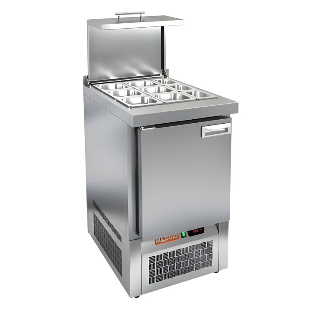 Модель объединяет в себе рабочую поверхность и охлаждаемый отсек, обеспечивая удобство, экономию места и быстрое взаимодействие с ингредиентами в процессе приготовления. Корпус и столешница изготовлены из нержавеющей стали, что гарантирует долговечность конструкции, устойчивость к коррозии и соответствие санитарным нормам. Металлическая крышка защищает продукты от загрязнений и сохраняет их свежесть.