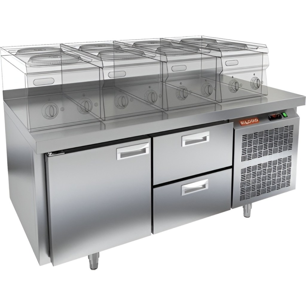 Каталог оборудования Холодильное оборудованиеСтолы охлаждаемыеСтолы холодильные под тепловое оборудованиеСтол охлаждаемый HiCold GN 12/TN LT SH под тепловое оборудование Стол охлаждаемый HiCold GN 12/TN LT SH под тепловое оборудование Код товара: 065-292 Поделиться: WhatsAppTelegram СравнитьДобавить в КПВ избранное 0 140 211 ₽ В корзину 0 шт Под заказСамовывоз сегодня бесплатно Взять в кредит Купить в лизинг Получить консультацию в WhatsApp Описание Характеристики Отзывы 0 Инструкции 2 Стол охлаждаемый HiCold GN 12/TN LT SH под тепловое оборудование предназначен для обработки ингредиентов и временного хранения скоропортящихся продуктов и напитков на предприятиях общественного питания и торговли. Устройство совмещает функции рабочей поверхности и холодильной камеры. Столешница рассчитана на установку теплового оборудования: под рабочей поверхностью встроен ДСП-лист, который укрепляет конструкцию и препятствует проникновению тепла внутрь. Такое решение обеспечивает дополнительную жесткость, позволяет рационально использовать рабочее пространство и повышает эффективность работы на кухне. Особенности: 1 распашная дверь и 2 выдвижные секции — удобный доступ к хранимым продуктам. Автоматические доводчики дверей с фиксатором открытого положения повышают эргономику и способствуют сохранению холода. Легкозаменяемые магнитные уплотнители обеспечивают плотное прилегание дверей и лёгкость в обслуживании. Открытая агрегатная часть упрощает доступ к компрессору при техническом обслуживании. Конструкция на низких ножках обеспечивает стабильность и удобство эксплуатации. Толщина столешницы — 50 мм обеспечивает прочность рабочей поверхности. Высота борта — 50 мм предотвращает падение продуктов и инвентаря. Толщина теплоизоляции — 50 мм способствует энергоэффективности и стабильному температурному режиму. HiCold GN 12/TN LT SH — это надёжное и удобное оборудование, сочетающее охлаждение и рабочее пространство. Благодаря продуманной конструкции и совместимости с гастроемкостями GN 1/1, стол станет практичным решением для кухни любого профессионального уровня.Изображение товара, представленного на фото, может отличаться от его фактического вида. Показать все Габаритные размеры1390×700×610 ммДиапазон рабочей температурыот -2 до +10 °CМатериал столешницыНержавеющая Расположение агрегатаБоковое Объём255 лТип столаС дверьми и ящиками Тип двериГлухая Количество дверей1 штКоличество ящиков2 штРазмер полки530×325 ммНапряжение220 ВМощность0,22 кВтТип охлажденияДинамический Тип оттайкиАвтоматическая СтолешницаС бортом Габариты в упаковке1550×850×850 ммВес нетто128 кгВес брутто148 кгБрендHicold Оставить отзыв Еще никто не оставил отзыв на этот товар Паспорт на HICOLD GN 12TN LT SH.pdfДекларация о соответствии.pdf Похожие товары Перейти в каталог В наличии 77 661 ₽ Стол холодильный среднетемпературный HiCold GN 11/TN W Под заказ 125 670 ₽ Стол холодильный среднетемпературный Abat СХС-70-01 с бортом (дверь, дверь) С этим товаром покупают В наличии 201 690 ₽ Шкаф морозильный Полюс Carboma F1400 В наличии 195 030 ₽ Плита индукционная Аbat КИП-47Н Ранее просмотрено Под заказ 191 692 ₽ Стол охлаждаемый HiCold GN 122/TN LT SH под тепловое оборудование