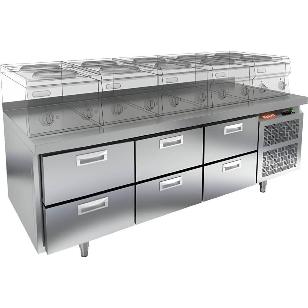 Каталог оборудования Холодильное оборудованиеСтолы охлаждаемыеСтолы холодильные под тепловое оборудованиеСтол охлаждаемый HiCold GN 222/TN LT O под тепловое оборудование Стол охлаждаемый HiCold GN 222/TN LT O под тепловое оборудование Код товара: 065-445 Поделиться: WhatsAppTelegram СравнитьДобавить в КПВ избранное 0 224 092 ₽ В корзину 0 шт Под заказСамовывоз сегодня бесплатно Взять в кредит Купить в лизинг Получить консультацию в WhatsApp Описание Характеристики Отзывы 0 Инструкции 2 Стол охлаждаемый HiCold GN 222/TN LT O под тепловое оборудование предназначен для обработки продуктов и временного хранения скоропортящихся ингредиентов и напитков на предприятиях общественного питания и торговли. Устройство совмещает функции холодильной камеры и рабочей поверхности, что делает его особенно удобным для профессиональных кухонь. Столешница рассчитана на установку теплового оборудования: под рабочей поверхностью встроен ДСП-лист, который укрепляет конструкцию и препятствует проникновению тепла внутрь. Такое решение обеспечивает дополнительную жесткость, позволяет рационально использовать рабочее пространство и повышает эффективность работы на кухне. Внимание! На фото показан стол с бортом. Данная модель поставляется без борта. Особенности: 6 выдвижных ящиков обеспечивают удобный доступ к продуктам и рациональную организацию пространства Автоматические доводчики дверей с фиксатором открытого положения улучшают эргономику работы и помогают сохранить холод внутри камеры. Легкозаменяемые магнитные уплотнители способствуют герметичности и простоте технического обслуживания. Регулируемые по высоте ножки позволяют адаптировать установку под особенности помещения. Нержавеющая столешница без борта для свободного использования рабочей поверхности. Толщина столешницы — 50 мм обеспечивает надёжную опору при интенсивной эксплуатации. Толщина теплоизоляции — 50 мм способствует энергоэффективности и поддержанию стабильной температуры. Температурный диапазон окружающей среды — от 12 до 37 °C, что делает оборудование универсальным в разных климатических условиях. HiCold GN 222/TN LT O сочетает функциональность, надёжность и простоту в обслуживании. Идеально подходит для кухонь ресторанов, кафе и других заведений общепита, где важно одновременно эффективно хранить продукты и иметь под рукой рабочее пространство.Изображение товара, представленного на фото, может отличаться от его фактического вида. Показать все Габаритные размеры1835×700×675 ммДиапазон рабочей температурыот -2 до +10 °CМатериал столешницыНержавеющая Расположение агрегатаБоковое Объём375 лТип столаС ящиками Количество ящиков6 штНапряжение220 ВМощность0,46 кВтТип охлажденияДинамический Тип оттайкиАвтоматическая СтолешницаБез борта Габариты в упаковке2000×850×850 ммВес нетто125 кгВес брутто170 кгБрендHicold Оставить отзыв Еще никто не оставил отзыв на этот товар Паспорт на HICOLD GN 222/TN LT O.pdfДекларация о соответствии.pdf Похожие товары Перейти в каталог Под заказ 137 619 ₽ Стол холодильный среднетемпературный Polair TD3GN-G Под заказ 108 164 ₽ Стол холодильный среднетемпературный HURAKAN HKN-GN3TN С этим товаром покупают Под заказ 389 300 ₽ Шкаф холодильный для вызревания мяса Polair CS107 Meat (Тип 1) Ранее просмотрено Под заказ 230 212 ₽ Стол морозильный HiCold GN 122/BT LT под тепловое оборудование Под заказ 175 813 ₽ Компрессорно-конденсаторный блок Се