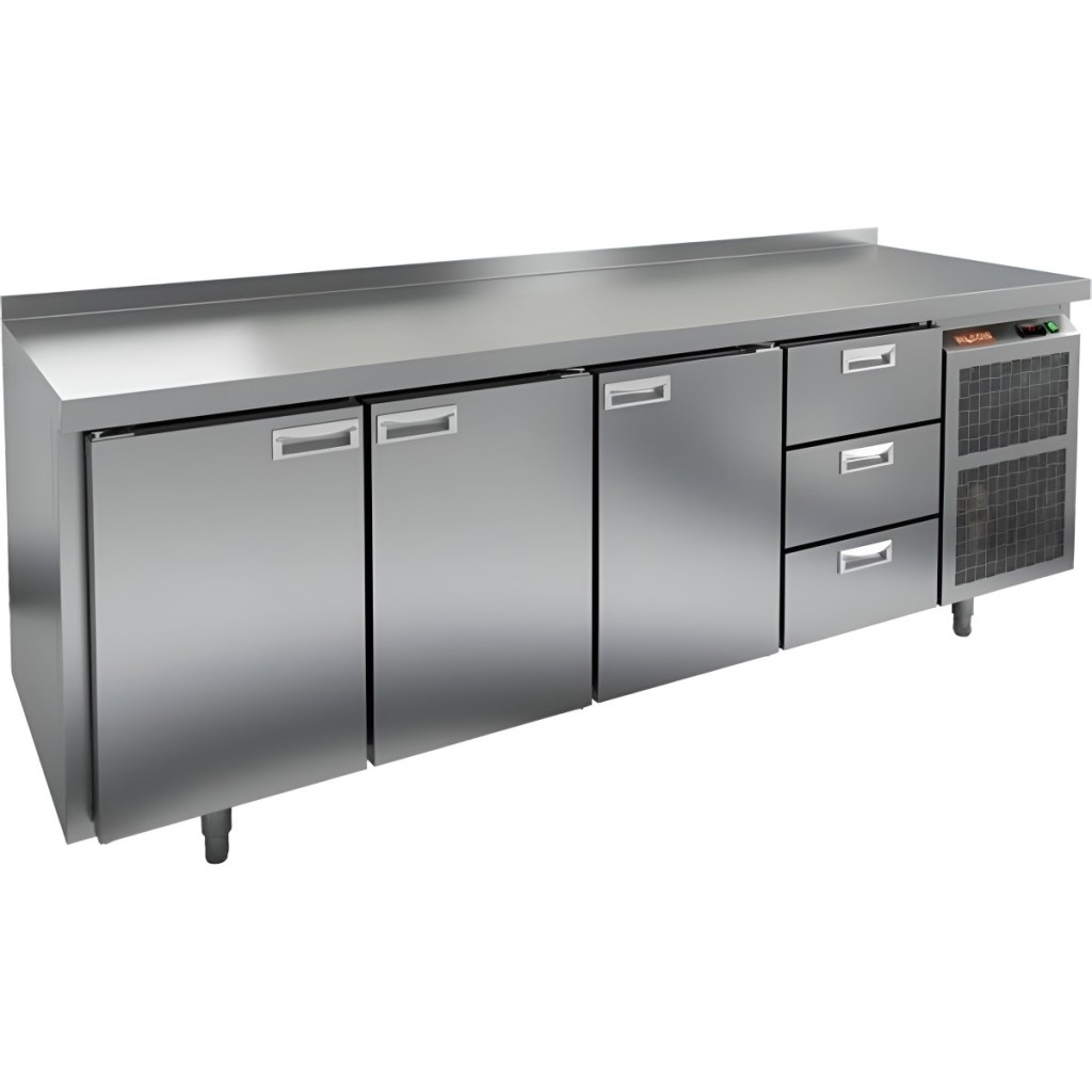 Каталог оборудования Холодильное оборудованиеСтолы охлаждаемыеСтолы холодильные среднетемпературныеСтол холодильный среднетемпературный HiCold SN 1113/TN Стол холодильный среднетемпературный HiCold SN 1113/TN Код товара: 001-329 Поделиться: WhatsAppTelegram СравнитьДобавить в КПВ избранное 0 212 841 ₽ В корзину 0 шт Под заказСамовывоз сегодня бесплатно Взять в кредит Купить в лизинг Получить консультацию в WhatsApp Описание Характеристики Отзывы 0 Инструкции 2 Стол холодильный среднетемпературный HiCold SN 1113/TN сочетает в себе рабочую поверхность для раскатывания теста и обработки ингредиентов, а также охлаждающую камеру для кратковременного хранения скоропортящихся продуктов и напитков. Оборудование предназначено для предприятий общественного питания и обеспечивает комфортную и эффективную работу на кухне. Особенности: Цельнозаливной корпус из нержавеющей стали с 50 мм теплоизоляцией, обеспечивающий высокую герметичность и жесткость конструкции. Надежный электронный блок управления с несколькими режимами оттаивания для удобства эксплуатации. Вентилятор повышенной мощности, обеспечивающий принудительную вентиляцию по всему объему стола и равномерное быстрое охлаждение. Интеллектуальное размораживание и термическое выпаривание конденсата для поддержания оптимальных условий внутри камеры. Новая экономичная модель компрессора, снижающая энергопотребление. Облегченный доступ к агрегату для удобства сервисного обслуживания. Двери с петлями-доводчиками, повышающими комфорт и безопасность при эксплуатации. Регулируемые по высоте ножки для адаптации к рабочей поверхности и неровностям пола. Максимальная нагрузка на полку — 50 кг. Высота борта — 50 мм для удобства и безопасности работы. Рабочая температура окружающего воздуха — от 12 до 37 °C. HiCold SN 1113/TN — это надежное, эргономичное и энергоэффективное решение для профессиональной кухни, сочетающее качественные материалы и современные технологии для оптимального хранения и подготовки продуктов.Изображение товара, представленного на фото, может отличаться от его фактического вида. Показать все Габаритные размеры2280×600×850 ммДиапазон рабочей температурыот -2 до +10 °CРасположение агрегатаБоковое Материал столешницыНержавеющая Тип столаС дверьми и ящиками Тип двериГлухая Объём570 лКоличество дверей3 штКоличество ящиков3 штНапряжение220 ВТип охлажденияДинамический Тип оттайкиАвтоматическая СтолешницаС бортом Вес нетто142 кгБрендHicoldВсе холодильные столы HicoldВсе оцинкованные холодильные столы Все холодильные столы с бортом Оставить отзыв Еще никто не оставил отзыв на этот товар Паспорт на HICOLD SN 1113/TN.pdfДекларация о соответствии.pdf Похожие товары Перейти в каталог Под заказ 197 541 ₽ Стол холодильный среднетемпературный HiCold SN 1112/TN Под заказ 258 741 ₽ Стол холодильный среднетемпературный HiCold SN 1133/TN В наличии 132 149 ₽ Стол холодильный среднетемпературный Cooleq GN4100TN С этим товаром покупают Под заказ 95 465 ₽ Жарочная поверхность Аbat АКО-80/1Н-С-02 Ранее просмотрено В наличии Цена по запросу Витрина холодильная настольная Cooleq CW-160S Под заказ 186 651 ₽ Стол холодильный среднетемпературный HiCold GN 112 BR3 TN О В наличии 106 373 ₽ Стол холодильный среднетемпературный Polair TDi2GN-G без борта Под заказ 135 396 ₽ Стол морозильный Abat СХН-60-01 с бортом (дверь, дверь) Под заказ 131 002 ₽ Стол морозильный Abat СХН-70 с бортом (ящики 1/2) Под заказ 149 302 ₽ 