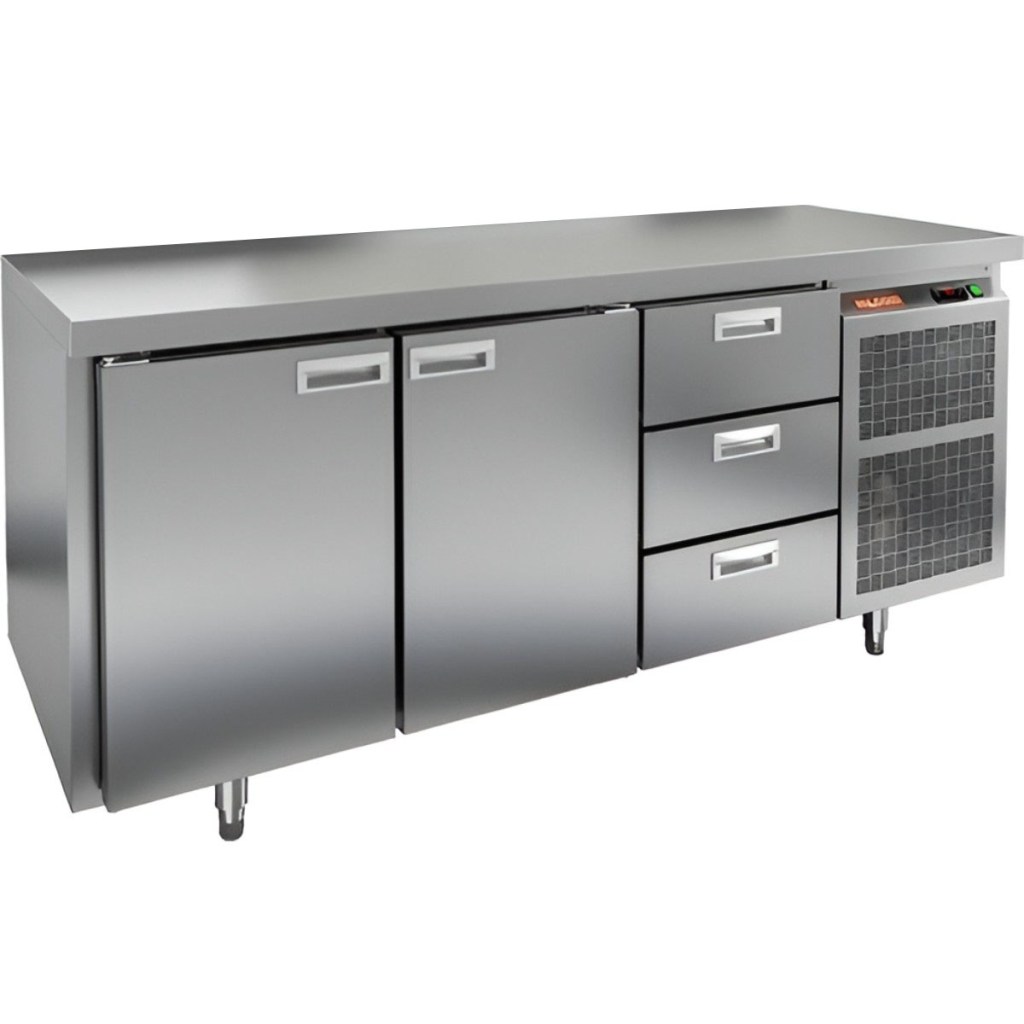 Каталог оборудования Холодильное оборудованиеСтолы охлаждаемыеСтолы морозильные низкотемпературныеСтол морозильный HiCold GN 113/BT O Стол морозильный HiCold GN 113/BT O Код товара: 065-066 Поделиться: WhatsAppTelegram СравнитьДобавить в КПВ избранное 0 220 852 ₽ В корзину 0 шт Под заказСамовывоз сегодня бесплатно Взять в кредит Купить в лизинг Получить консультацию в WhatsApp Описание Характеристики Отзывы 0 Инструкции 2 Стол морозильный HiCold GN113/BT О сочетает в себе удобную рабочую поверхность и вместительную морозильную камеру. Верхняя часть используется для раскатки теста и подготовки ингредиентов, а внутренняя камера предназначена для заморозки и хранения продуктов и полуфабрикатов. Стол оснащен двумя глухими дверями и тремя выдвижными ящиками, что обеспечивает удобный доступ к продуктам и рациональное использование внутреннего пространства. Оборудование идеально подходит для предприятий общественного питания. Особенности: Совместимость с GN-стандартом — полки, направляющие и стойки полностью интегрируются с профессиональным кухонным оборудованием. Прочный цельнозаливной корпус из нержавеющей стали с 50 мм изоляцией обеспечивает высокую герметичность и жесткость конструкции. Столешница без борта для удобной работы с крупными и длинными заготовками. Электронный блок управления с повышенной надежностью и несколькими режимами оттаивания. Вентилятор увеличенной мощности и принудительная вентиляция по всему объему камеры для равномерного и быстрого охлаждения. Интеллектуальная система размораживания и термическое выпаривание конденсата снижают затраты на обслуживание. Экономичный компрессор нового поколения снижает энергопотребление. Облегченный доступ к агрегату упрощает сервисное обслуживание. Двери с доводчиками и ПЭН предотвращают примерзание и обеспечивают плотное закрытие. Регулируемые по высоте ножки для устойчивости на разных поверхностях. Максимальная нагрузка на полку — 50 кг. Высота борта рабочей поверхности — 50 мм. Температура окружающей среды: 12–32 °C. HiCold GN113/BT О — это надежный и функциональный морозильный стол, обеспечивающий удобство работы и эффективное хранение продуктов. Он идеально подходит для интенсивной эксплуатации на профессиональных кухнях ресторанов, кафе и предприятий общественного питания.Изображение товара, представленного на фото, может отличаться от его фактического вида. Показать все Габаритные размеры1835×700×850 ммДиапазон рабочей температурыот -18 до -10 °CРасположение агрегатаБоковое Материал столешницыНержавеющая Тип столаС дверьми и ящиками Тип двериГлухая Объём505 лКоличество дверей2 штКоличество ящиков3 штНапряжение220 ВМощность0,6 кВтТип охлажденияДинамический Тип оттайкиАвтоматическая СтолешницаБзе борта Габариты в упаковке200×845×995 ммВес нетто210 кгВес брутто230 кгБрендHicoldВсе морозильные столы HicoldВсе морозильные столы без борта Оставить отзыв Еще никто не оставил отзыв на этот товар Паспорт на HICOLD GN113/BT О.pdfДекларация о соответствии.pdf Похожие товары Перейти в каталог Под заказ 166 404 ₽ Стол морозильный Abat СХН-70-02 без борта (дверь, дверь, дверь) Под заказ 156 861 ₽ Стол морозильный HiCold GN 111/BT W С этим товаром покупают Под заказ 176 862 ₽ Шкаф холодильный Abat ШХ-1,4 Ранее просмотрено Под заказ 237 250 ₽ Сплит-система холодильная низкотемпературная АСК-холод СН-32