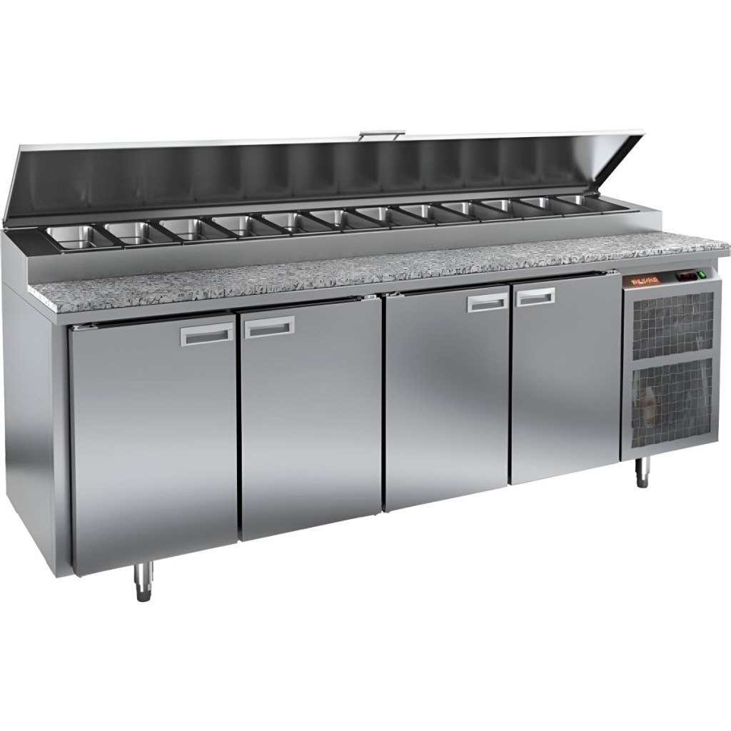 Каталог оборудования Холодильное оборудованиеСтолы охлаждаемыеСтолы холодильные для пиццыСтол холодильный для пиццы HiCold PZ1-1111GN (1/3) камень Стол холодильный для пиццы HiCold PZ1-1111GN (1/3) камень Код товара: 064-684 Поделиться: WhatsAppTelegram СравнитьДобавить в КПВ избранное 0 290 062 ₽ В корзину 0 шт Под заказСамовывоз сегодня бесплатно Взять в кредит Купить в лизинг Получить консультацию в WhatsApp Описание Характеристики Отзывы 0 Инструкции 2 Стол холодильный для пиццы HiCold PZ1-1111GN (1/3) камень предназначен для профессиональных кухонь ресторанов, кафе и предприятий торговли. Он совмещает просторную рабочую поверхность из камня для раскатки теста и подготовки ингредиентов с охлаждаемым объёмом для кратковременного хранения продуктов и напитков. Такой подход экономит место и ускоряет работу повара — всё необходимое всегда под рукой. Основные особенности: Столешница из камня — устойчива к механическим повреждениям, не впитывает запахи и легко очищается Динамическая система охлаждения для равномерного распределения холода Автоматическая оттайка для бесперебойной работы Электронная панель управления для точной регулировки температуры 4 вместительные полки формата GN 1/1 (размер 530×325 мм) Автоматические доводчики дверей с фиксатором открытого положения Легкозаменяемые магнитные уплотнители для поддержания герметичности Открытая агрегатная часть для удобного обслуживания Регулируемые по высоте ножки для установки по уровню Максимальная глубина гастроёмкостей: 100 мм Глубина рабочей поверхности: 324 мм Толщина столешницы и теплоизоляции: 50 мм Вместимость салат-бара: до 12 гастроёмкостей HICOLD PZ1-1111/GN со столешницей из камня — это прочный, гигиеничный и удобный стол для пиццы, сочетающий рабочую поверхность и холодильный блок. Идеален для интенсивной эксплуатации на профессиональной кухне.Изображение товара, представленного на фото, может отличаться от его фактического вида. Показать все Габаритные размеры2280×700×1000 ммДиапазон рабочей температурыот +2 до +10 °CРасположение агрегатаБоковое Материал столешницыГранитная Тип столаС дверьми Тип двериГлухая Объём660 лТип гастроемкостейGN 1/3 Количество дверей4 штРазмер полки530×325 ммНапряжение220 ВМощность0,48 кВтТип охлажденияДинамическое Тип оттайкиАвтоматическая Габариты в упаковке2380×840×1140 ммВес нетто208 кгВес брутто228 кгБрендHicoldВсе холодильные столы для пиццы Hicold Оставить отзыв Еще никто не оставил отзыв на этот товар Паспорт на HICOLD PZ1-1111GN (1/3).pdfДекларация о соответствии.pdf Ранее просмотрено Под заказ 247 672 ₽ Стол холодильный для пиццы HiCold PZE1-1111GN (1/3) камень