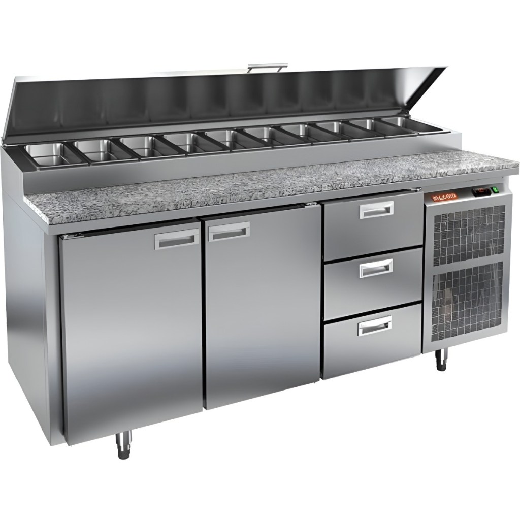 Каталог оборудования Холодильное оборудованиеСтолы охлаждаемыеСтолы холодильные для пиццыСтол холодильный для пиццы HiCold PZ1-113GN (1/3H) камень Стол холодильный для пиццы HiCold PZ1-113GN (1/3H) камень Код товара: 064-693 Поделиться: WhatsAppTelegram СравнитьДобавить в КПВ избранное 0 292 762 ₽ В корзину 0 шт Под заказСамовывоз сегодня бесплатно Взять в кредит Купить в лизинг Получить консультацию в WhatsApp Описание Характеристики Отзывы 0 Инструкции 2 Стол холодильный для пиццы HiCold PZ1-113GN (1/3H) камень — профессиональное оборудование для ресторанов, кафе и предприятий торговли. Он совмещает рабочую поверхность для раскатки теста и подготовки ингредиентов с охлаждаемым блоком для кратковременного хранения продуктов и напитков. Каменная столешница устойчива к повреждениям, не впитывает запахи и легко очищается. Корпус выполнен из нержавеющей стали, обеспечивая долговечность и гигиеничность. Основные особенности: Каменная столешница — прочная, устойчивая к повреждениям и легко моется Динамическая система охлаждения — равномерное распределение холода Автоматическая оттайка — поддержка стабильной работы без наледи Электронная панель управления — точная настройка температуры и режимов 2 вместительные полки формата GN 1/1 3 выдвижных ящика для хранения дополнительных ингредиентов Автоматические доводчики дверей с фиксатором открытого положения — удобство загрузки и выгрузки Легкозаменяемые магнитные уплотнители — поддержание герметичности Открытая агрегатная часть — облегчённый доступ к техническим элементам Регулируемые по высоте ножки — установка по уровню Максимальная глубина гастроёмкостей: 150 мм (крайняя правая — 100 мм) Глубина рабочей поверхности: 324 мм Толщина столешницы и теплоизоляции: 50 мм Вместимость салат-бара: до 10 гастроёмкостей Стол холодильный HiCold PZ1-113GN (1/3H) камень — надёжный и функциональный стол для пиццы и салатов. Каменная рабочая поверхность, охлаждаемый блок, полки и ящики для хранения делают его удобным для интенсивной работы на профессиональной кухне.Изображение товара, представленного на фото, может отличаться от его фактического вида. Показать все Габаритные размеры1835×700×1000 ммДиапазон рабочей температурыот +2 до +10 °CРасположение агрегатаБоковое Материал столешницыГранитная Тип столаС дверьми и ящиками Тип двериГлухая Объём505 лТип гастроемкостейGN 1/3 Количество дверей2 штКоличество ящиков3 штРазмер полки530×325 ммНапряжение220 ВМощность0,5 кВтТип охлажденияДинамическое Тип оттайкиАвтоматическая Габариты в упаковке2000×850×1140 ммВес нетто172 кгВес брутто200 кгБрендHicoldВсе холодильные столы для пиццы Hicold Оставить отзыв Еще никто не оставил отзыв на этот товар Паспорт на HICOLD PZ1-113GN.pdfДекларация о соответствии.pdf Ранее просмотрено Под заказ 236 872 ₽ Стол холодильный для пиццы HiCold PZ1-111/GN (1/3H) M (R290) Под заказ 147 141 ₽ Стол холодильный для салатов HiCold SLE1-111SN (1/3) Под заказ 114 110 ₽ Витрина холодильная универсальная Premier ВОЛНА ВСУП1-0,39ТУ/В-1,6 Под заказ 256 672 ₽ Стол холодильный для пиццы HiCold PZ2-111GN (1/6) камень со стеклом В наличии Цена по запросу Витрина морозильная Иней LIDA-LOTUS М 3,75 Цена по запросу Витрина холодильная ВПC 0,195-1,2 (Italfrigo Veneto Self 1250 Д)