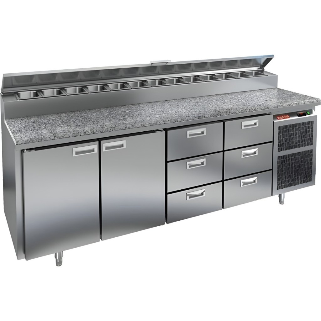 Каталог оборудования Холодильное оборудованиеСтолы охлаждаемыеСтолы холодильные для пиццыСтол холодильный для пиццы HiCold PZ2-1133GN (1/6) камень Стол холодильный для пиццы HiCold PZ2-1133GN (1/6) камень Код товара: 064-760 Поделиться: WhatsAppTelegram СравнитьДобавить в КПВ избранное 0 381 862 ₽ В корзину 0 шт Под заказСамовывоз сегодня бесплатно Взять в кредит Купить в лизинг Получить консультацию в WhatsApp Описание Характеристики Отзывы 0 Стол холодильный для пиццы HiCold PZ2-1133/GN (1/6) камень предназначен для кухонь и предприятий общественного питания. Он используется для раскатки теста, подготовки ингредиентов для пиццы, салатов и других блюд, а также для охлаждения и кратковременного хранения скоропортящихся продуктов. Модель совмещает гранитную рабочую поверхность и охлаждаемый отсек с 2 дверьми и 6 ящиками, обеспечивая удобный доступ к ингредиентам и эффективное хранение. Особенности: Динамическая система охлаждения для равномерного поддержания температуры Автоматическая оттайка для удобного обслуживания Электронная панель управления для точной настройки параметров Вместительная внутренняя полка формата GN 1/1 (размер 530×325 мм) 2 двери и 6 вместительных ящика для хранения ингредиентов Автоматические доводчики дверей с фиксатором открытого положения Легкозаменяемые магнитные уплотнители для герметичности Открытая агрегатная часть для легкого доступа к компонентам Регулируемые по высоте ножки для устойчивости Гранитная рабочая поверхность глубиной 486 мм и толщиной 50 мм — устойчива к повреждениям, высоким температурам и царапинам Толщина теплоизоляции: 50 мм Максимальная глубина гастроемкостей: 100 мм Вместимость салат-бара: 13 гастроемкости Стол холодильный HiCold PZ2-1133/GN (1/6) камень — это надёжный и функциональный стол для пиццы. Он сочетает рабочую поверхность и охлаждаемый отсек, облегчает хранение и подготовку ингредиентов, повышает удобство работы повара и соответствует стандартам профессиональной кухни.Изображение товара, представленного на фото, может отличаться от его фактического вида. Показать все Габаритные размеры2280×700×1000 ммДиапазон рабочей температурыот +2 до +10 °CРасположение агрегатаБоковое Материал столешницыГранитная Тип столаС дверьми и ящиками Тип двериГлухая Объём660 лТип гастроемкостейGN 1/6 Количество дверей2 штКоличество ящиков6 штРазмер полки530×325 ммНапряжение220 ВМощность0,5 кВтТип охлажденияДинамическое Тип оттайкиАвтоматическая Габариты в упаковке2420×850×1080 ммВес нетто230 кгВес брутто280 кгБрендHicoldВсе холодильные столы для пиццы Hicold Оставить отзыв Еще никто не оставил отзыв на этот товар Ранее просмотрено Под заказ 338 662 ₽ Стол холодильный для пиццы HiCold PZ2-222GN (1/6) камень Под заказ 220 042 ₽ Стол холодильный для пиццы HiCold PZE2-111/GN камень со стеклом