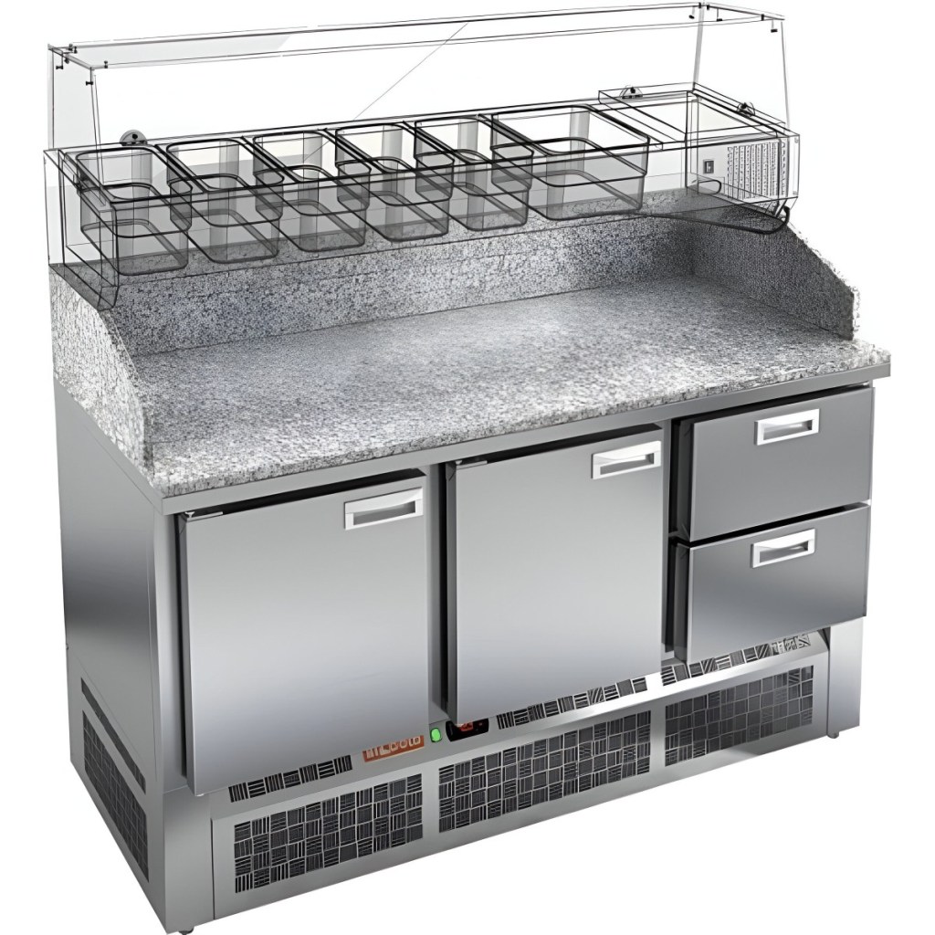 Каталог оборудования Холодильное оборудованиеСтолы охлаждаемыеСтолы холодильные для пиццыСтол холодильный для пиццы HiCold PZE3-112/SN камень Стол холодильный для пиццы HiCold PZE3-112/SN камень Код товара: 064-989 Поделиться: WhatsAppTelegram СравнитьДобавить в КПВ избранное 0 276 292 ₽ В корзину 0 шт Под заказСамовывоз сегодня бесплатно Взять в кредит Купить в лизинг Получить консультацию в WhatsApp Описание Характеристики Отзывы 0 Стол холодильный для пиццы HiCold PZE3-112/SN камень предназначен для использования в пиццериях, кафе, магазинах и ресторанах. Он идеально подходит для раскатки теста, подготовки ингредиентов для пиццы и кратковременного хранения скоропортящихся продуктов. Витрина приобретается отдельно. Особенности модели: Корпус: нержавеющая сталь — прочный, гигиеничный и долговечный Столешница: гранит — устойчива к царапинам, ударам и температурным нагрузкам Охлаждение: динамическое для равномерного поддержания температуры Оттайка: автоматическая — удобство и экономия времени Панель управления: электронная — точная настройка температуры Ножки: регулируемые по высоте — устойчивость на неровной поверхности Двери: автоматические доводчики с фиксатором открытого положения Уплотнители: легкозаменяемые магнитные — герметичность и простота обслуживания Толщина теплоизоляции: 50 мм — сохранение холода и энергоэффективность Рабочая поверхность: глубина 580 мм — удобство работы Полки: 2 полки размером 430×325 мм (GN 1/1) — максимальная вместимость HiCold PZE3-112/SN камень— надёжный и функциональный холодильный стол с гранитной столешницей, который сочетает прочность, удобство в работе и эффективное охлаждение продуктов. Он станет универсальным решением для профессиональной кухни, где важны скорость, организация и сохранение свежести ингредиентов. Изображение товара, представленного на фото, может отличаться от его фактического вида. Показать все Габаритные размеры1485×600×1050 ммДиапазон рабочей температурыот +2 до +10 °CРасположение агрегатаНижнее Материал столешницыГранитная Тип столаС дверьми и ящиками Тип двериГлухая Объём320 лКоличество дверей2 штКоличество ящиков2 штРазмер полки430×325 ммНапряжение220 ВМощность0,22 кВтТип охлажденияДинамическое Тип оттайкиАвтоматическая Габариты в упаковке1700×750×1280 ммВес нетто155 кгВес брутто175 кгБрендHicoldВсе холодильные столы для пиццы HicoldВсе нержавеющие холодильные столы для пиццы Оставить отзыв Еще никто не оставил отзыв на этот товар Ранее просмотрено Под заказ 314 452 ₽ Стол холодильный для пиццы HiCold PZ3-33/GN камень