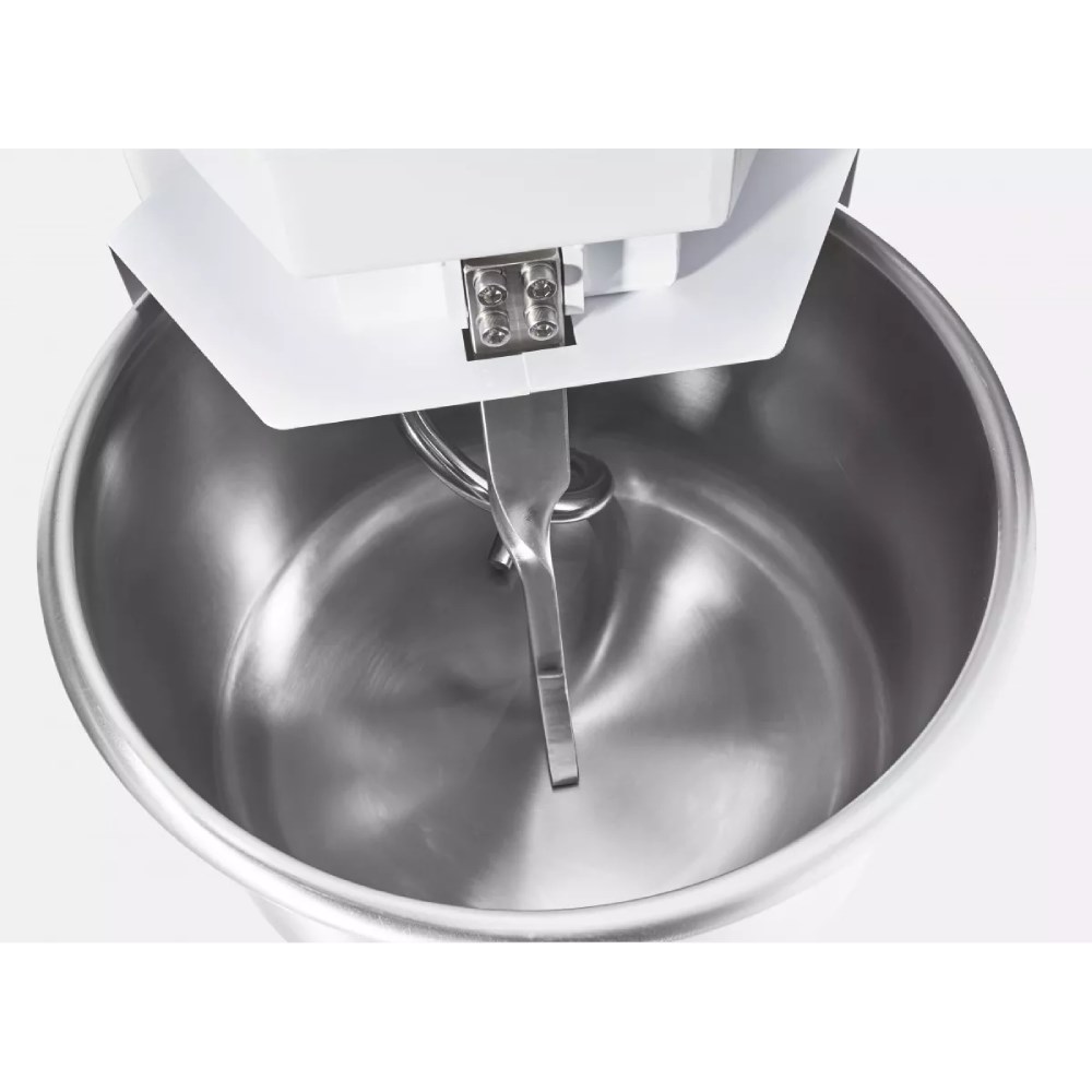 Изогнутый нож и эксцентричное движение спирали обеспечивают высокое качество теста. Встроенная функция реверса облегчает извлечение готовой массы. Камера для замеса оснащена округлыми углами, что упрощает чистку, а благодаря наличию колес и регулируемых ножек аппарат удобно перемещать и устанавливать. Привод работает бесшумно за счет медленного вращения и оснащен ремнями из пенополиуретана с термостойким покрытием и дополнительной защитой от перегрева.