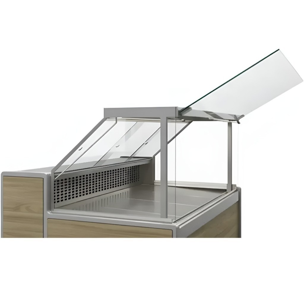Подъёмное фронтальное стекло — облегчает доступ к продукции и обслуживание витрины